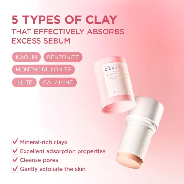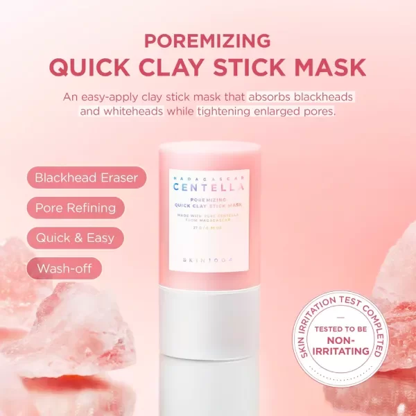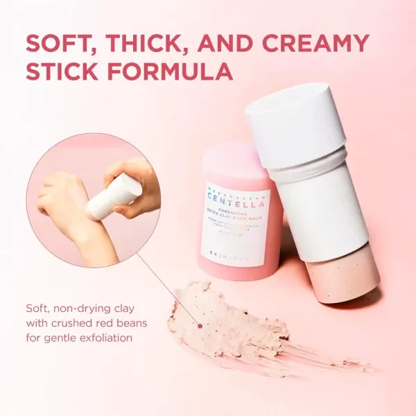 La SKIN1004 Madagascar Centella Poremizing Quick Clay Stick Mask es una mascarilla de arcilla en formato barra que limpia profundamente los poros, controla la grasa y exfolia suavemente gracias a 5 tipos de arcilla y polvo de frijol rojo, calmando la piel con Centella Asiática y aloe vera para una piel más lisa, fresca y sin brillos, ideal para poros visibles y piel mixta/grasa, con aplicación fácil y rápida sin ensuciar.